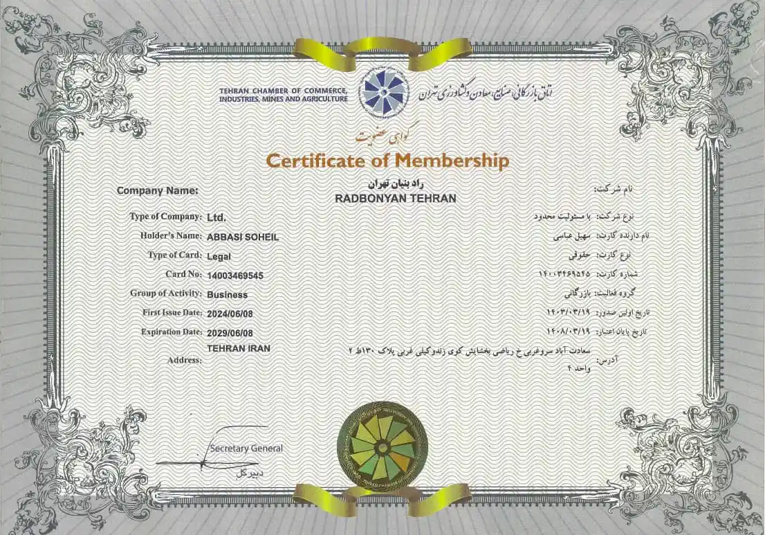 - عضویت در اتاق بازرگانی، صنایع و معادن استان تهران